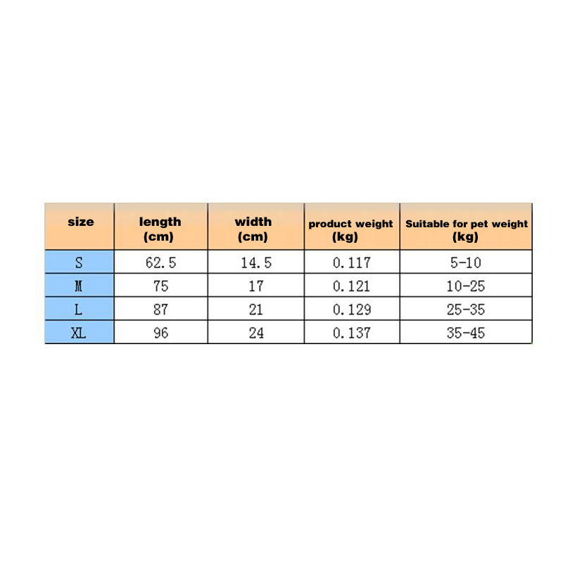 - Abdominal support, dog weight to reduce the leg burden of the strap.